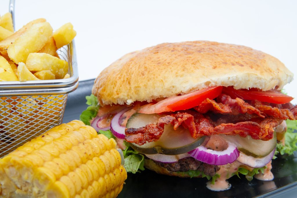 Obere Brötchenhälfte ebenfalls mit Sauce bestreichen und den Burger schließen.